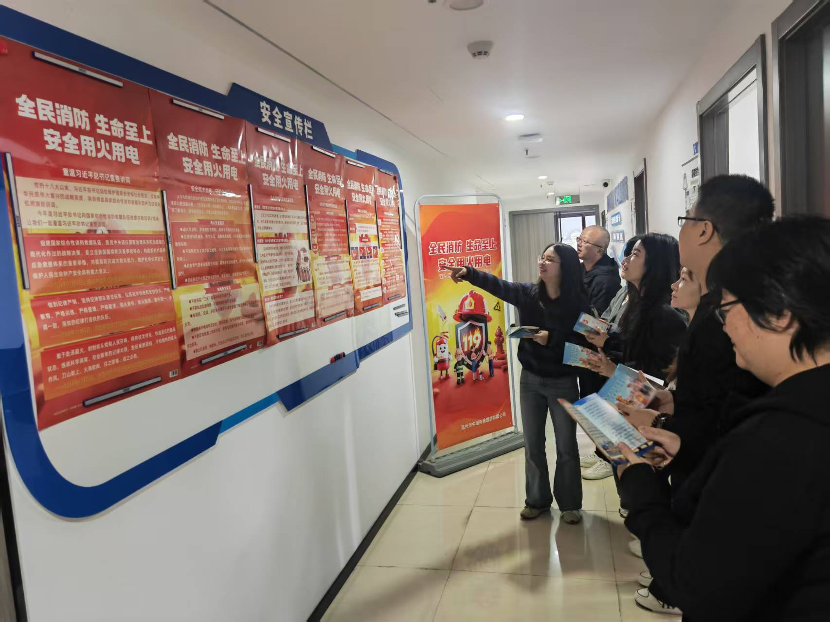 在知识宣传环节,公司创新宣传形式,在行政办公区域及主要通道打造了"消防安全文化长廊",通过图文并茂的展板和醒目海报营造浓厚氛围。安全管理人员现场发放定制化宣传手册,结合典型案例深入浅出地讲解日常用火用电安全要点,并重点传授初期火灾扑救技巧和逃生自救方法。