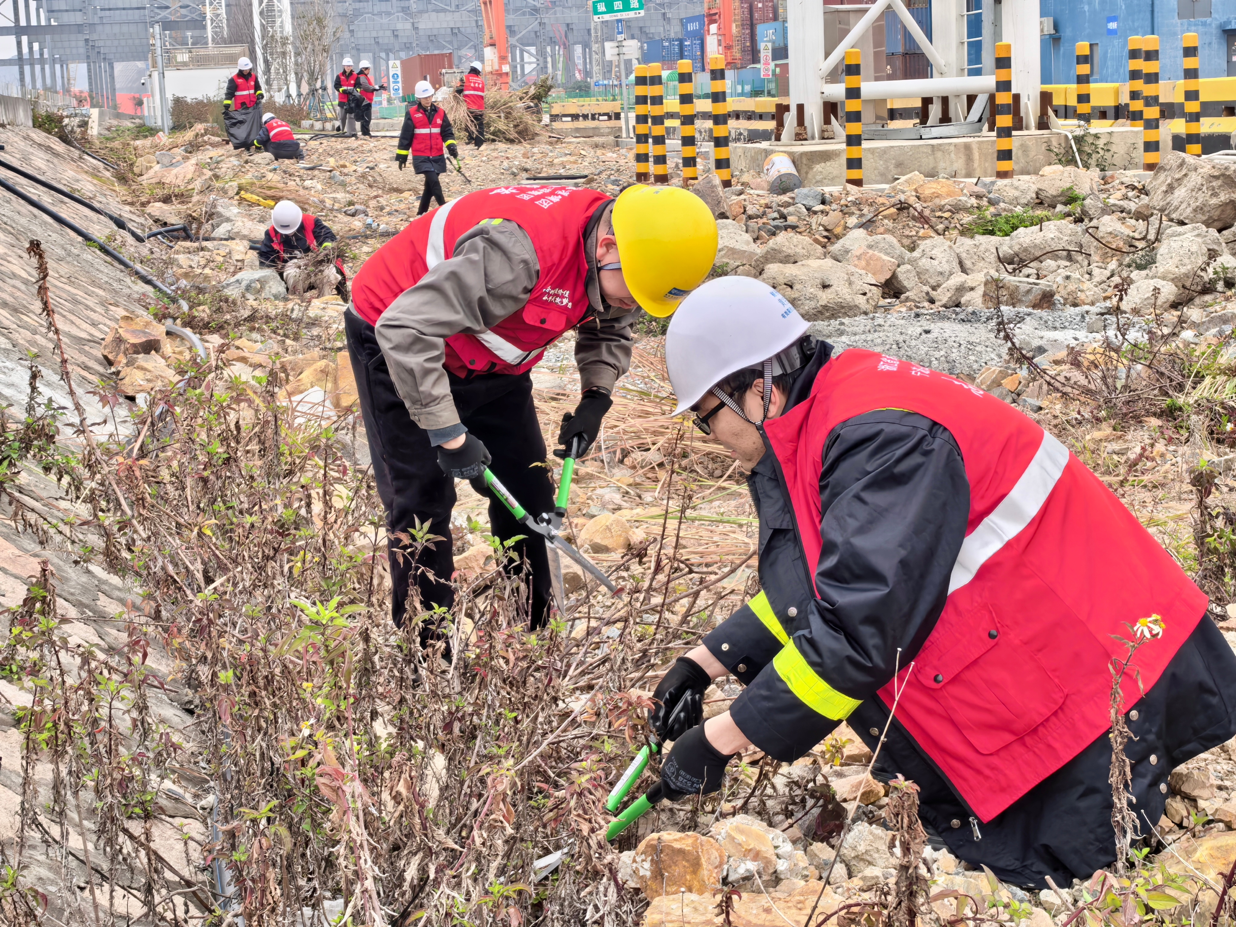为积极响应公司“共创文明新高地 赋能强港金南翼”的文明港区建设号召,传递“爱绿、植绿、护绿”的环保理念,状元岙公司开展“3·12”植树节暨港区绿化清洁志愿活动,全体党员、团员青年及职工志愿者踊跃参与,以实际行动厚植港区绿色文明底蕴。
